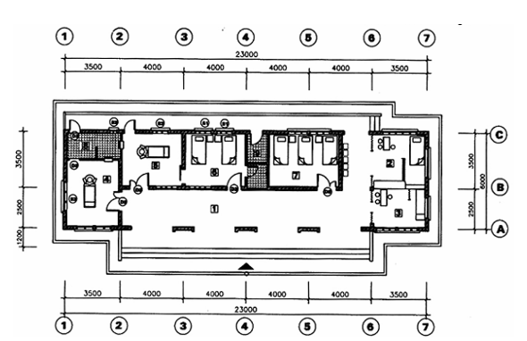 Hình B.2 - Mặt bằng tầng 1 khối kỹ thuật trạm theo mẫu số 2 có qui mô dân số lớn hơn 10 000 dân