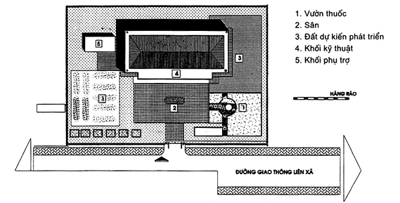 | 1. Vườn thuốc; | 3. Khối kỹ thuật; |