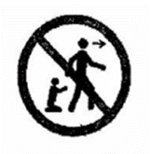 Các ống nối để thổi phồng đồ chơi vận động có thể làm phồng phải có cảnh báo đi kèm về nguy cơ ngã đè lên máy thổi, ví dụ như sau: