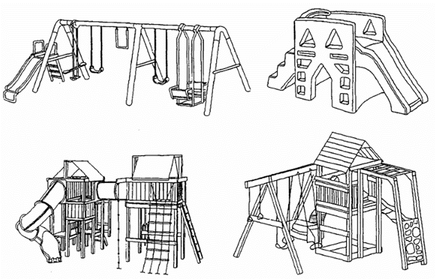 VÍ DỤ Đu, cầu trượt, đồ chơi cưỡi/quay tròn và khung trèo (xem Hình 1).