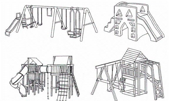 VÍ DỤ Đu, cầu trượt, đồ chơi cưỡi/quay tròn và khung trèo (xem Hình 1).